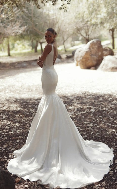 Pnina Tornai's 15210 is a stunning fit-and-flare gown that celebrates your silhouette with timeless elegance. The flattering V-neckline draws the eye upward while the fitted bodice hugs your curves before flowing into a graceful skirt. This silhouette balances structure with movement, creating a romantic yet contemporary look that photographs beautifully. Perfect for the bride who wants to feel confident and radiant on her wedding day.